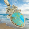 Designer piece of art with PURPLE MOHAVE TURQUOISE stone and beautiful designer’s work of wire and gold plated flowers work. Made with .925 Sterling Silver without nickel in it. Hook is in the back of the pendant. Size Length: around 3″ x Width: 1 1/2″ x Weight: 19.8 grams. Beautiful piece, lots of detailed work. Get FREE shipping on us TODAY!!