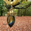 Cute scenic Pendant of RHODOCHROSITE natural stone in beautiful patterns with natural undyed GARNETS hand-faceted stones. Rhodochrosite is said to integrate different parts of the self, stimulating passion and the warmth of inner and outer love whilst energizing the rest of your being. Rhodochrosite is thought to help empower the carrier with positive focus that in turn help with overcoming addictions of every kind, be that food, drugs or self – destruction. It is also a stone of joy and nurturing. Rhodochrosite is the perfect stone for love and relationships. Done an incredible filigree hand-made work by a designer on .925 Sterling Silver allergic, lead or plating free, Dimension: Length 1 1/2 inch x Width 3/4 inch x Weight 8.2 grams. Deal comes with Quartz Necklace FREE in 18″ length (16″ + 2″ adjustable).