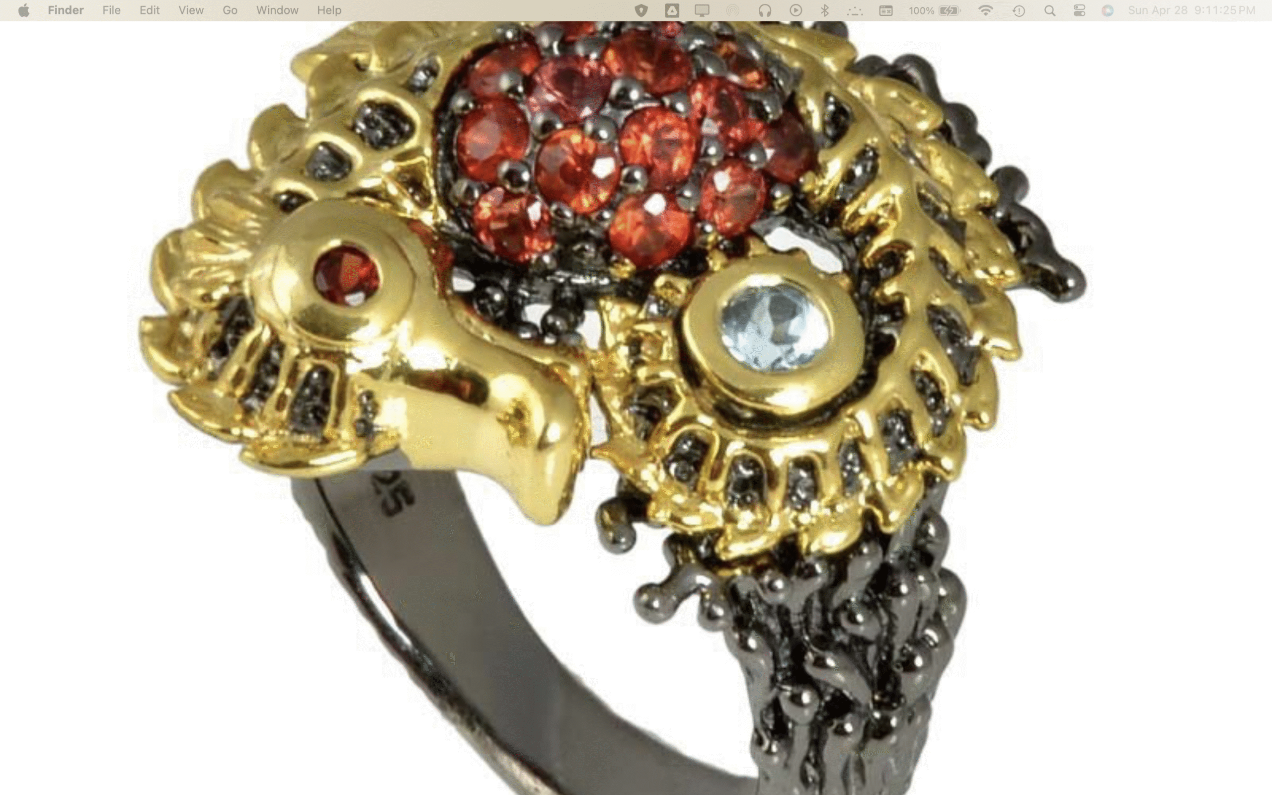 It is truly a piece of incredible art of SEAHORSE RING handmade with tons of detailed and quality work. All genuine gemstones of RED SAPPHIRE, the best GARNET in the world from Mozambique, and SKY BLUE TOPAZ. All Gemstones are natural and no colors added or heat-treated. 18 Karat Gold and Rhodium plating finished over 925 Sterling Silver. One-of-a-kind, Designer’s Made, nickel-free, lead-free, allergic-free and Skin-friendly. Weight: 9.4 grams. For women USA Size 7. Order Ships out: within 1-2 days, 30 days money back guarantee. Get it now and get a free shipping from us TODAY!!